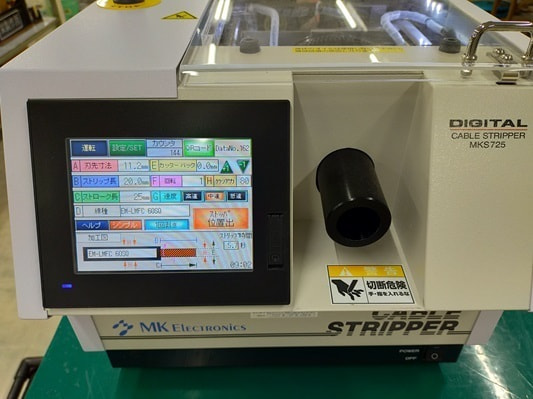 設定した値に電線を切断し、同時に被覆むきも可能です。数百メートルといった長さにも対応しています。
