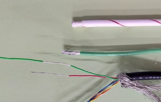 本機で加工した電線の例です。AWG30といった細い線や、テフロン被覆といったカッターでは加工しにくい素材も容易に加工が可能です。