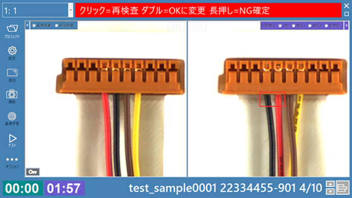 良品に対して色や形状を比較することで、誤配線などを検出します。人間の注意力に頼らないため、高品質な外観検査が可能です。